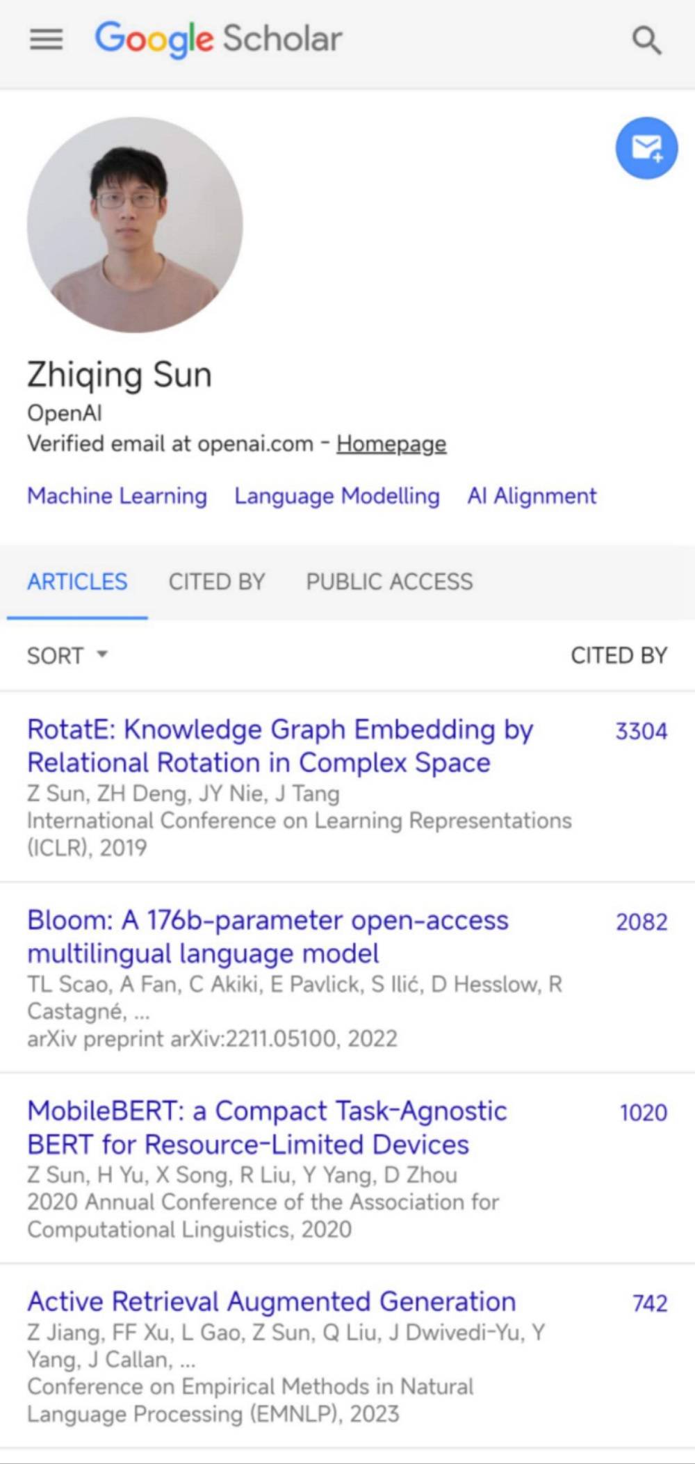 孙之清被援用量最高的论文是《RotatE:通过复杂空间中的关系扭转实现学问图谱嵌入》,2025年2月,智工具此前曾报道。本年7月,还被顶会ICLR收录了。这些AI大牛们也十分看沉团队形成——他们期望能取本人一样优良的人才合做。获得计较机科学荣誉学士学位,同样加盟MSL不久的思维链之父、前OpenAIJason Wei转发了他取孙之清的最新合照,除了丰厚的薪资之外,此前就有外媒爆料,正在他的谷歌学术从页上已有多篇高被引论文。